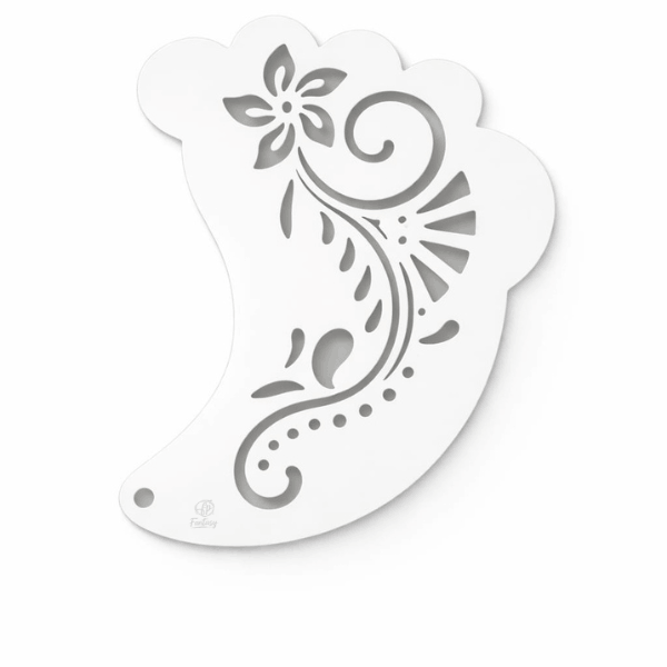 La Plantilla Fantasy Ala 010 es una plantilla de material plástico blanco y flexible, diseñada para facilitar el proceso de pintura facial y corporal. Su diseño único con corte en forma de luna proporciona una aplicación más práctica y precisa, especialmente para detalles cerca de los ojos. Esta plantilla es ideal para crear efectos mágicos, ideales para diseños de fantasía, festivales o eventos especiales.