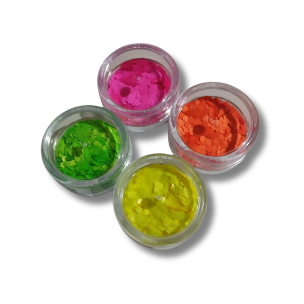 Set Glitter Chunky Neón (4 colores) | Glitter Cosmético Chunky – Brillo UV para Cara, Cuerpo y Cabello
